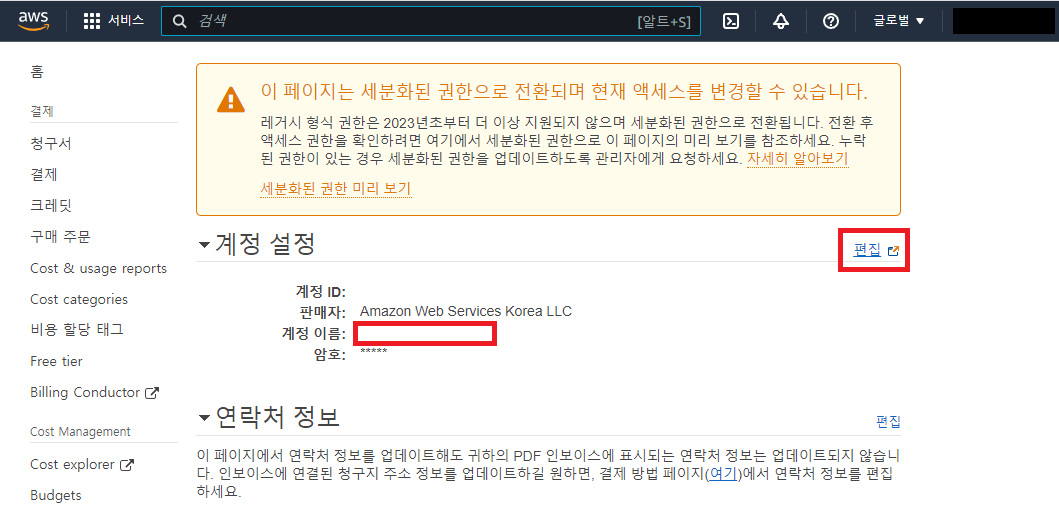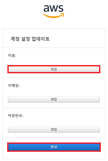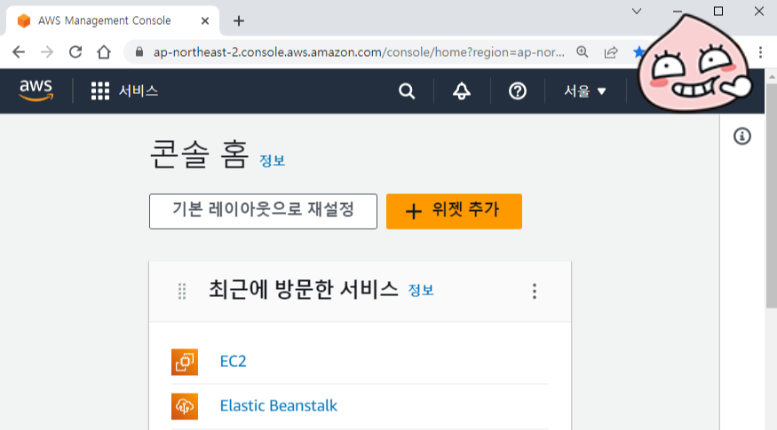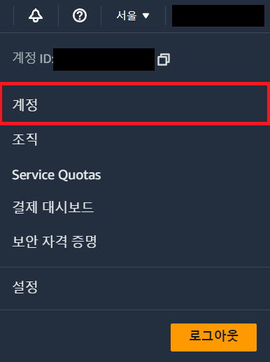 AWS에 접속하면 오른쪽 위에 보이는 비밀번호