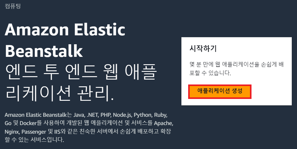 https://ap-northeast-2.console.aws.amazon.com/elasticbeanstalk/home?region=ap-northeast-2#/welcome