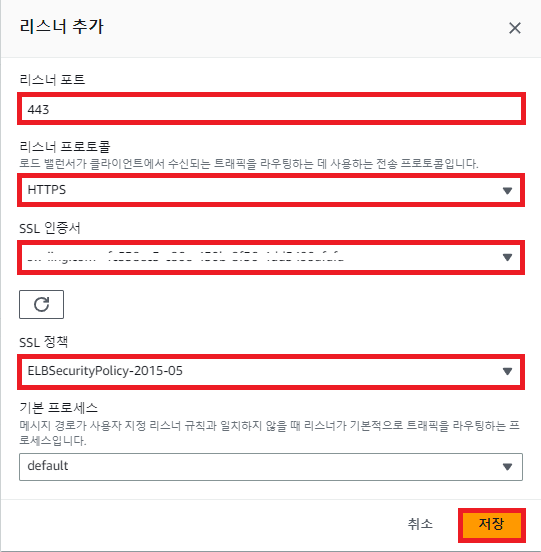 HTTPS 리스너 프로토콜 - 리스너 포트는 443