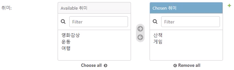 filter_horizontal = ['hobby'] # ManyToMany에서 사용