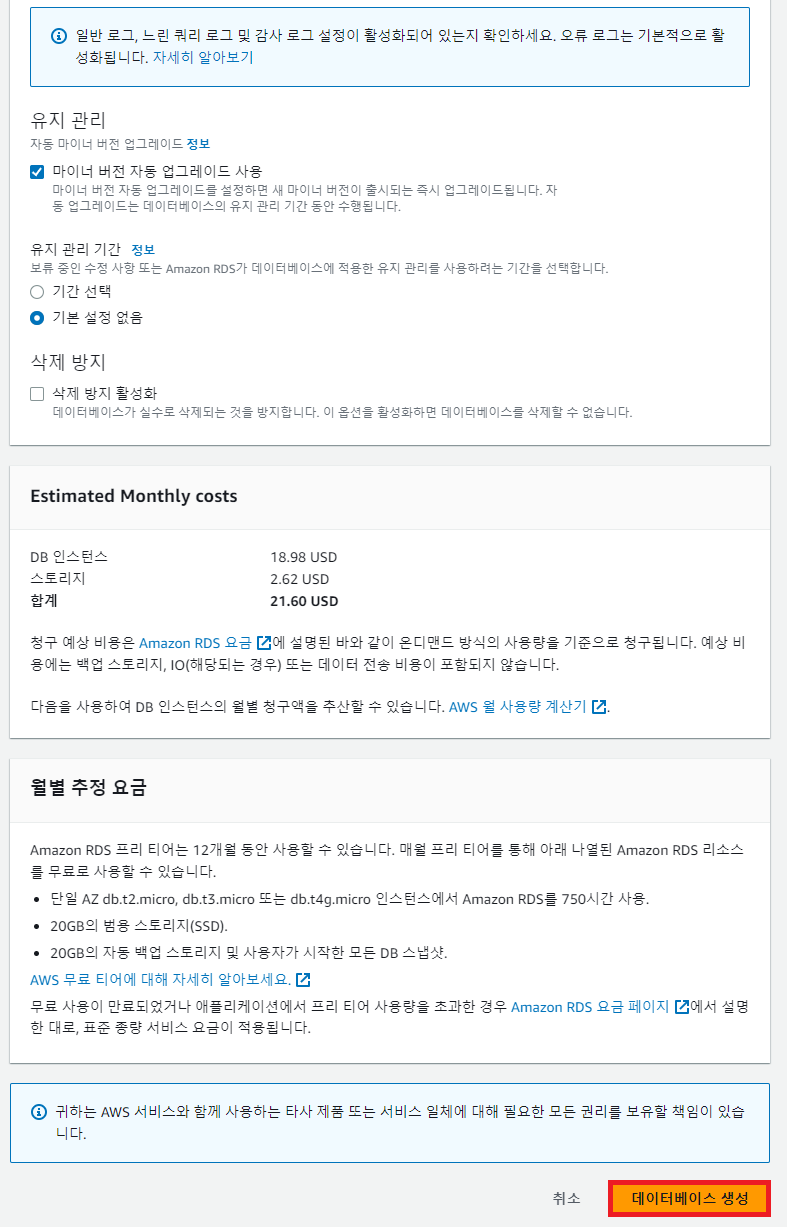 | AWS 프리티어 만료 KMS 키 RDS 계정 옮기기 (1) | 2023.08.31 |