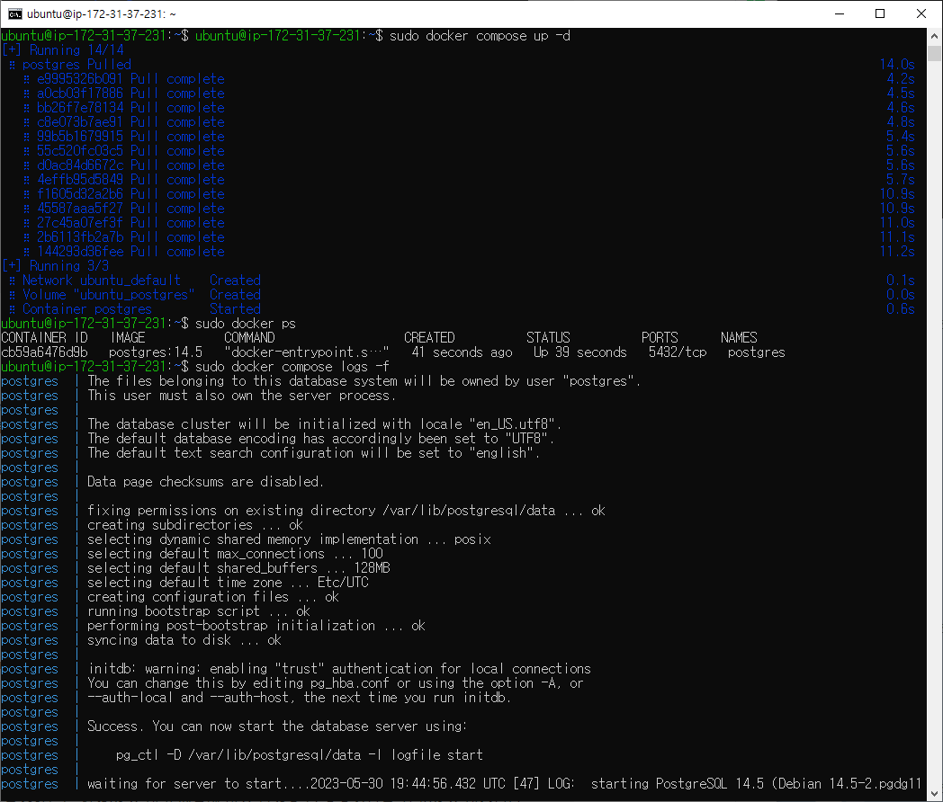 - POSTGRES_PASSWORD=P@ssw0rd # 사용자 비밀번호 지정