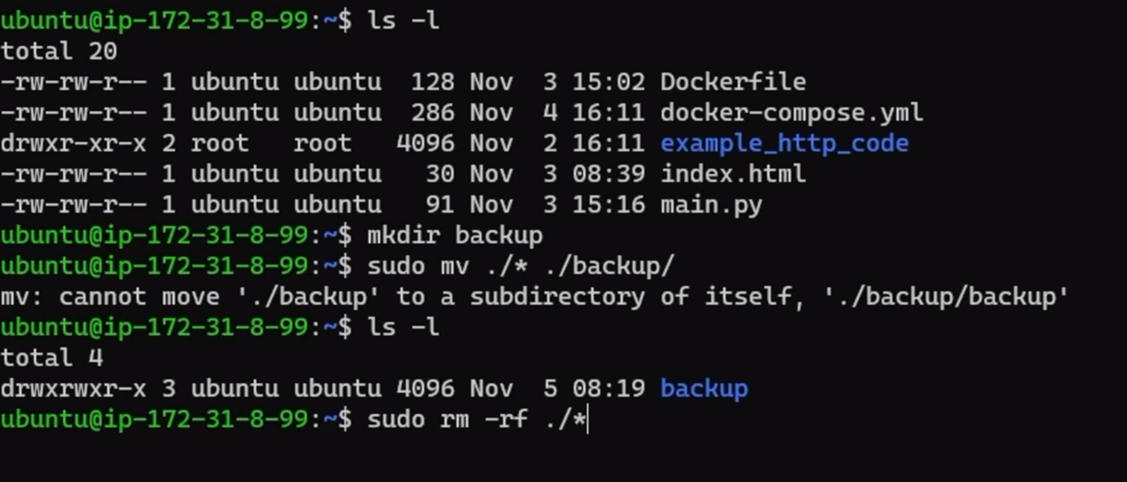 sudo mv ./* ./backup/ : 모든 파일 이동