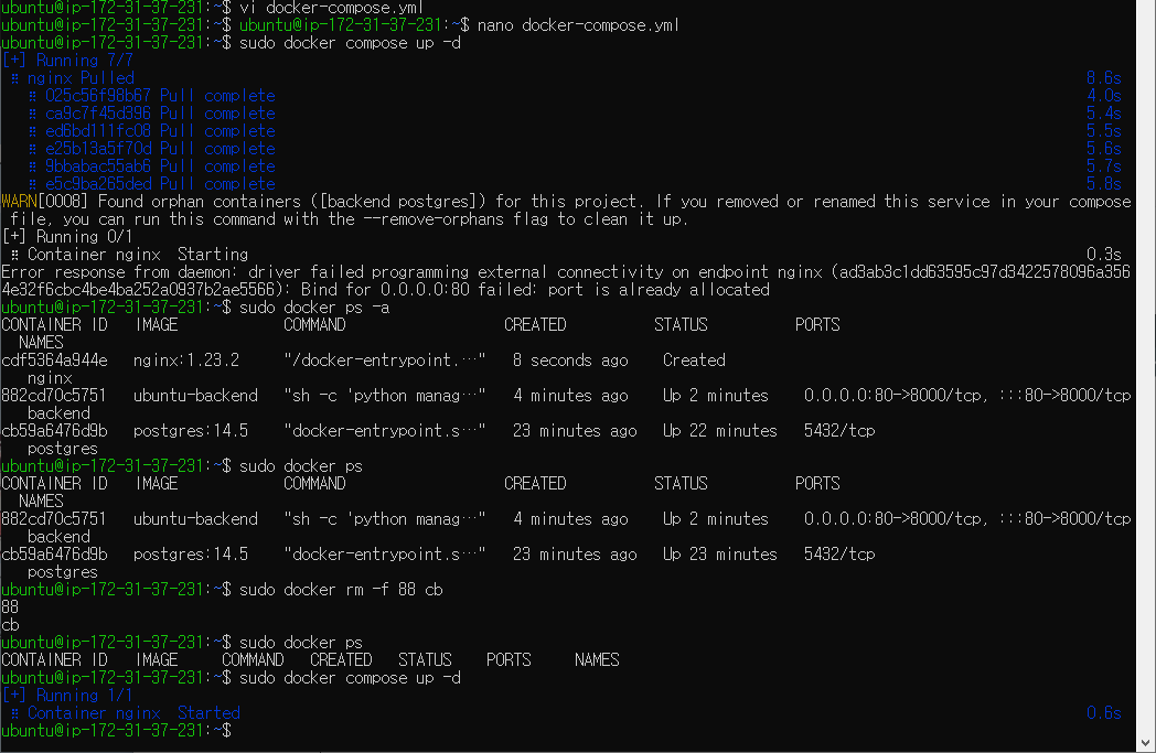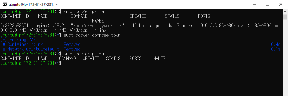 sudo docker ps -a : 확인
