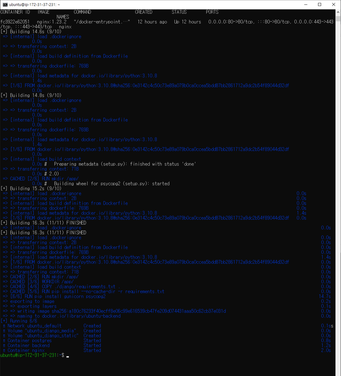 - django_static:/static/ # django의 static 사용할 수 있도록 volume을 지정해줍니다.