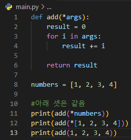 list : 값이 비어있거나 여러개여도 상관 없고 list에 *을 붙여서 넣어줄 수 있음.
