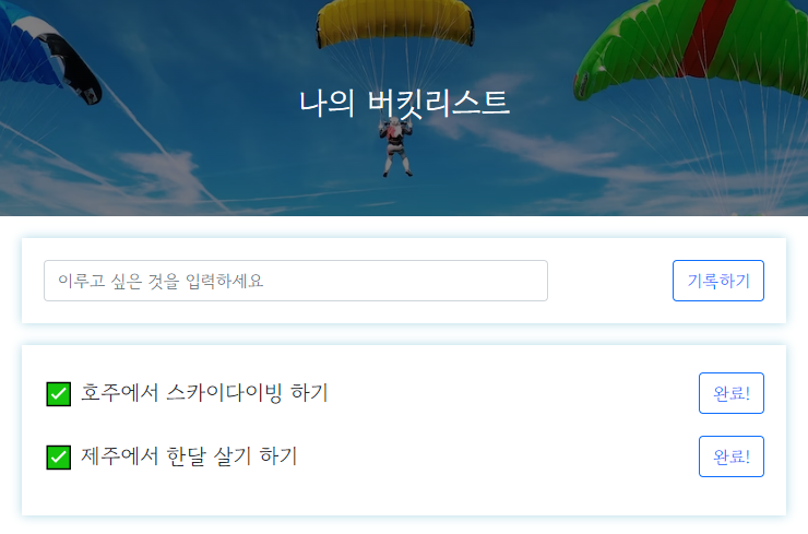 3. 서버(flask) -> 클라(ajax) : 메시지를 보냄(버킷 완료!)