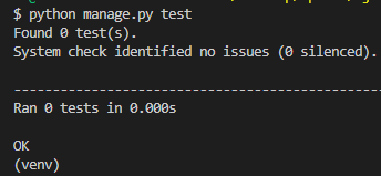 python manage.py test <앱이름> : 앱에서 작성한 하나의 test만 실행하고 싶을 때